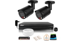 Zestaw monitoringu IP Dahua 4MPx 2K 2 kamery czarne zewnętrzne z dyskiem 1TB