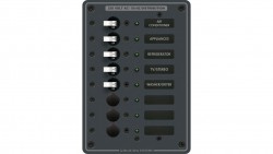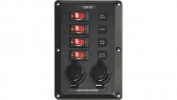 Panel Wyłączników Blue Sea BelowDeck – 4 obwody + 2 gniazda 12V