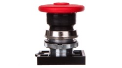 Przycisk grzybkowy 22mm czerwony fi 28 pierścień czołowy aluminium BE-B3P1-RT-000000