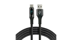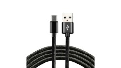 Kabel przewód pleciony USB - USB-C / Typ-C LCD everActive CBB-2CBL 200cm z obsługą szybkiego ładowania do 3A czarny
