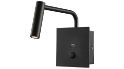 Kinkiet hotelowy LED 3W 180lm NW 3000K z włącznikiem i gniazdem USB ciepła czarny IP20 V-TAC VT-2943