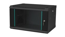 Szafka rack wisząca 19 6U 600x450, drzwi szklane, kolor czarny FLAT PACK