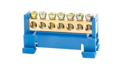 Listwa zaciskowa niska na szynę 7-torowa niebieska TH35 E.4023