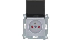 Gniazdo z uziemieniem (Typ E) przesłonami torów prądowych i pokrywą gniazda Srebrne 247/10E EXEN