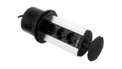 Przedłużacz biurkowy 220x107mm 2x gniazdo SCHUKO wejście USB audio in/out miniJack RJ45 aluminium AE-PB02GS-53