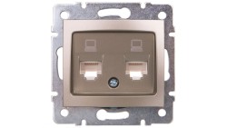 DOMO Gniazdo komputerowe podwójne niezależne 2x RJ45Cat 5e Jack szampańskie 011410050 25050