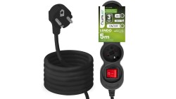 Przedłużacz Sieciowy Kabel z Uziemieniem Listwa Zasilająca 3 Gniazda 5m Włącznik ON/OFF Czarny Sznur Lendo Lumiled