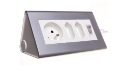 Gniazda wpuszczane w blat 3x230V /płaski frezowany rant/ srebrne OR-AE-1336/G