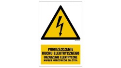 HA028 Pomieszczenie ruchu elektrycznego urządzenie elektryczne napięcie niebezpieczne dla życia 30 x 45 cm FN - Folia samoprzyle