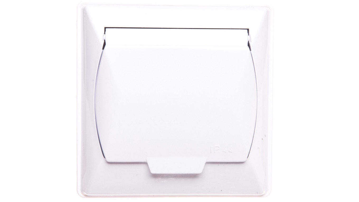 AKCENT Gniazdo bryzgoszczelne z/u IP44 klapka biała GPH-1AZ/00/w