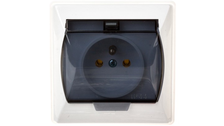 AKCENT Gniazdo bryzgoszczelne z/u IP44 klapka przezroczysta białe GPH-1AZ/00/d