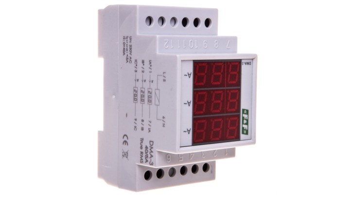Amperomierz 3-fazowy cyfrowy modułowy 0-40A dokładność 0,5 DMA-3 40/5A True RMS