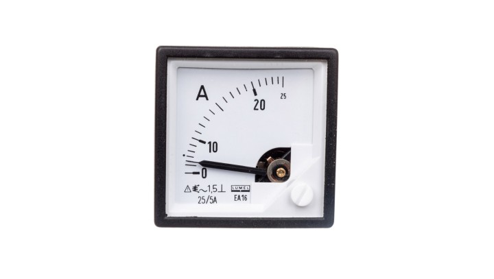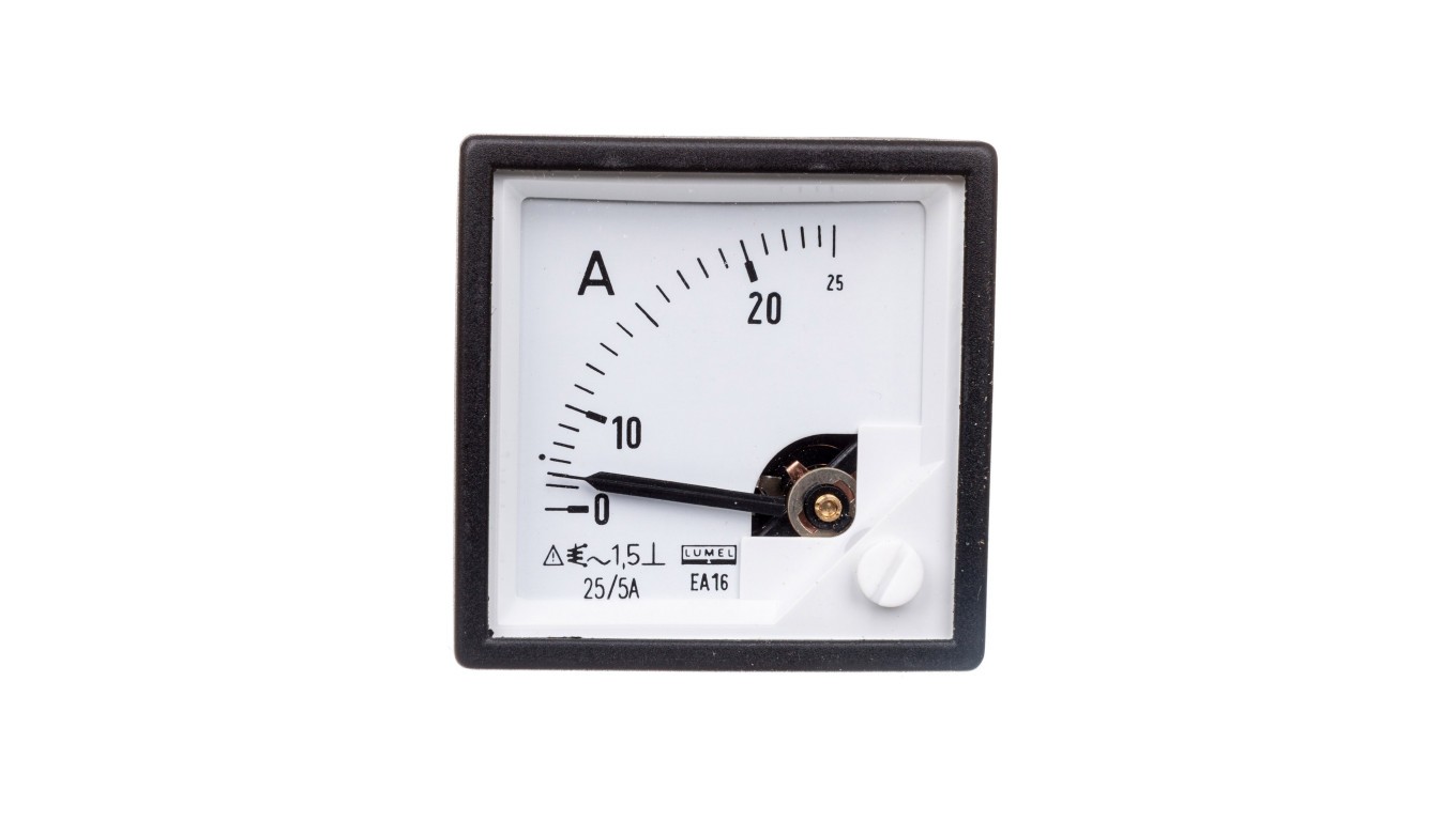 Amperomierz analogowy tablicowy 25A do przekładnika 25/5A kl. 1,5 48x48mm IP50 C3 K=90 st. EA16N C41000000A0