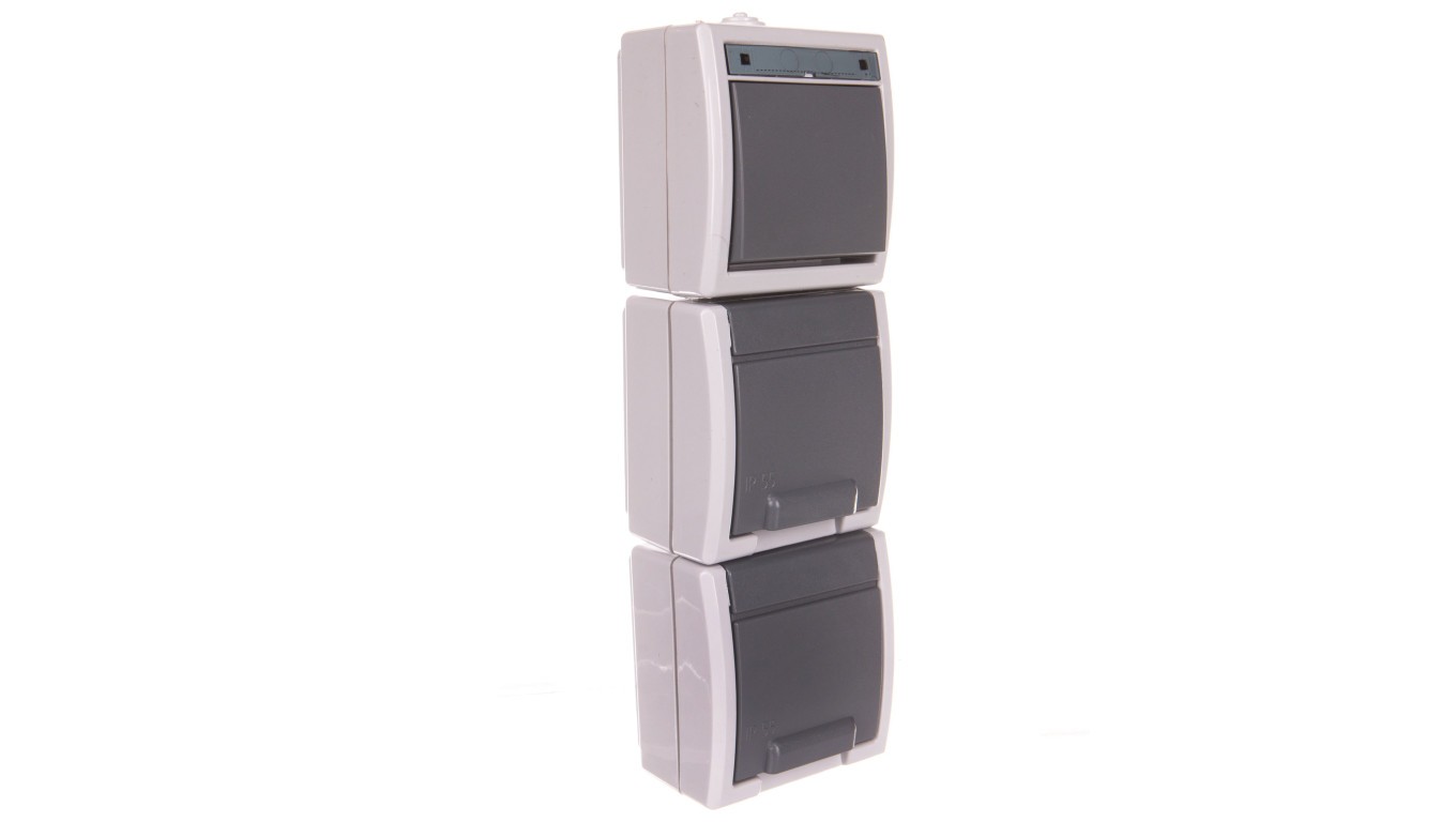 AQUANT Łącznik 1-b/schod + GNT 2x2P+Z pionowe szare IP55 1262-10