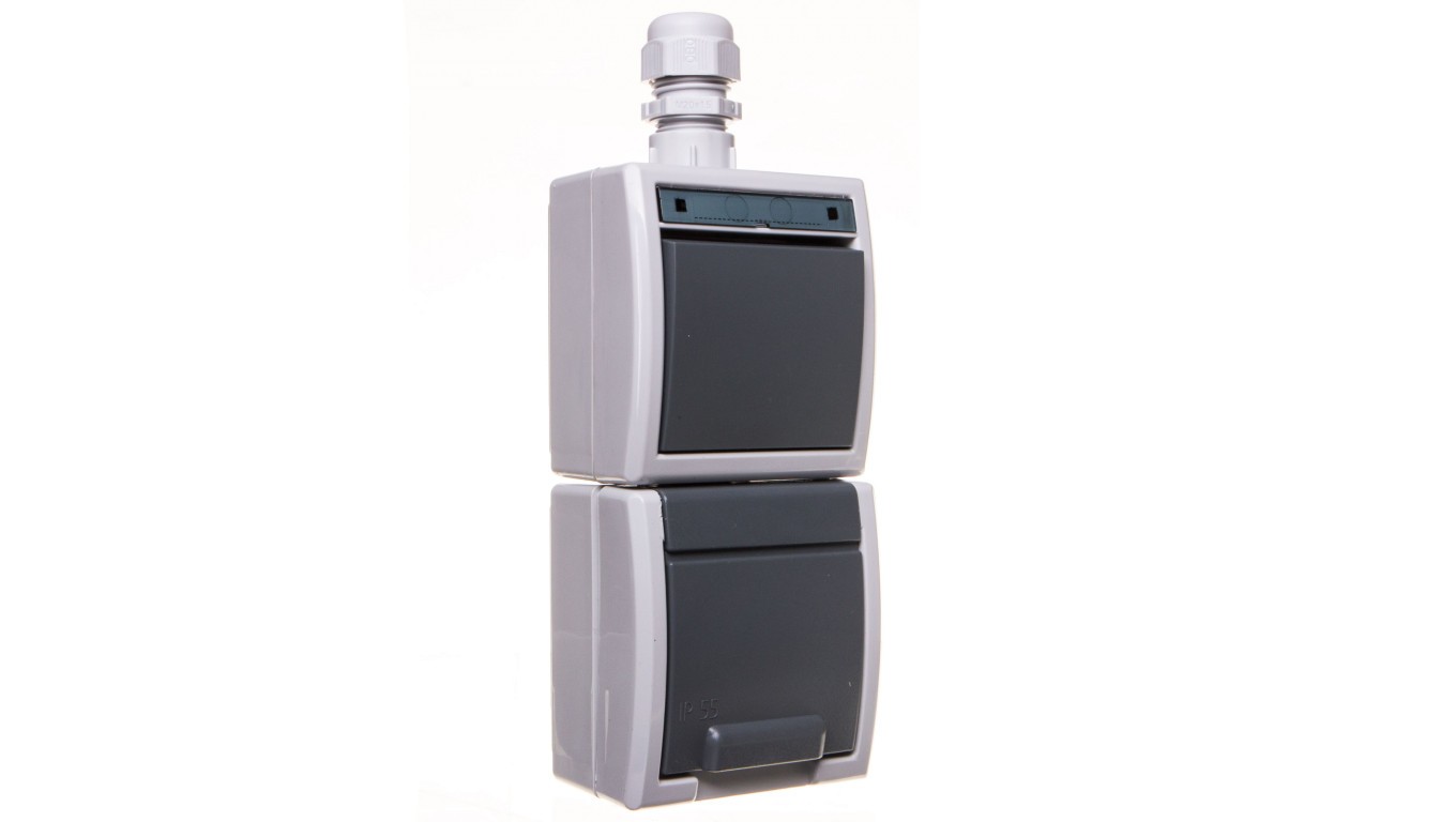 AQUANT Zestaw Łącznik 1-biegunowy/schodowy + gniazdo pojedyncze z/u 2P+Z pionowe IP65 1256-65