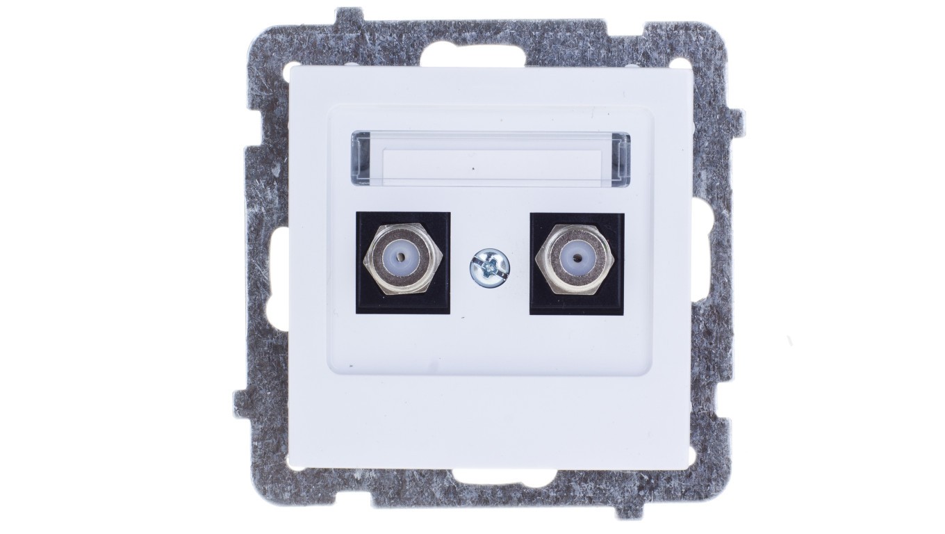 AS Gniazdo antenowe podwójne typu F białe GPA-2GF/m/00