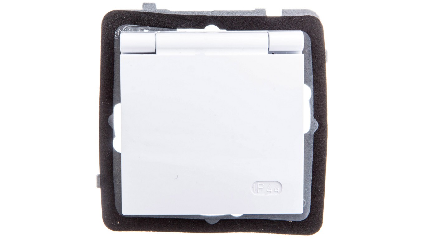 AS Gniazdo bryzgoszczelne z/u IP44 z przesłonami klapka biała GPH-1GZP/m/00/w