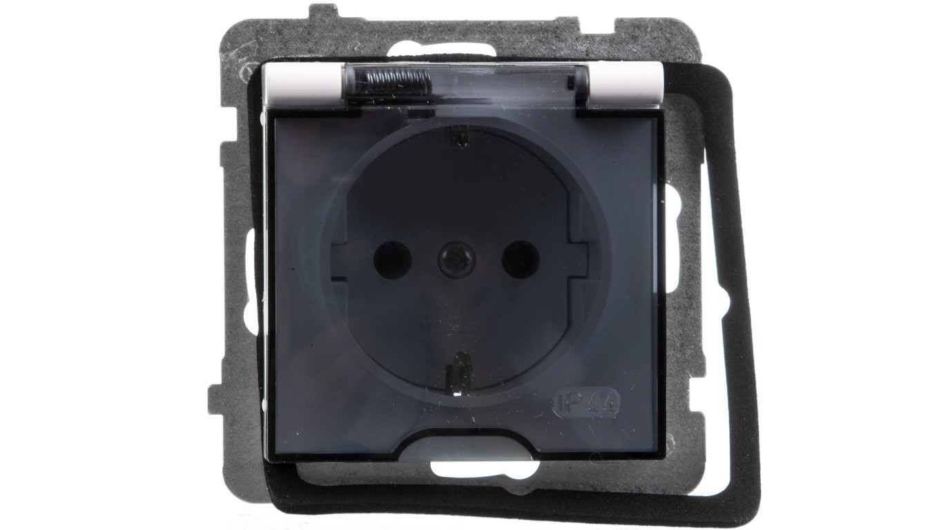 AS Gniazdo bryzgoszczelne z/u Schuko IP44 klapka przezroczysta białe GPH-1GS/m/00/d