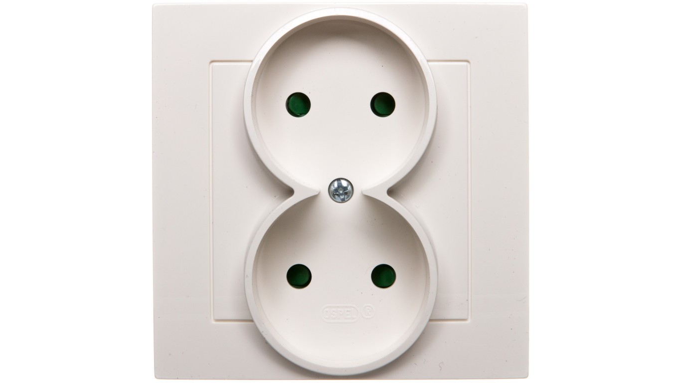 AS Gniazdo podwójne b/u z przesłonami ecru GP-2GP/27