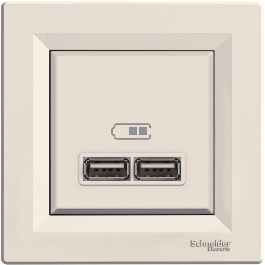 Asfora Gniazdo ładowarki USB 2.1A z ramką, kremowy EPH2700223