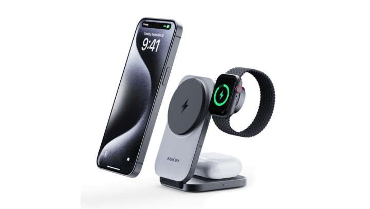 Aukey Ładowarka indukcyjna 3w1 Qi2.0, 15W, na iPhone, Apple watch i Airpods