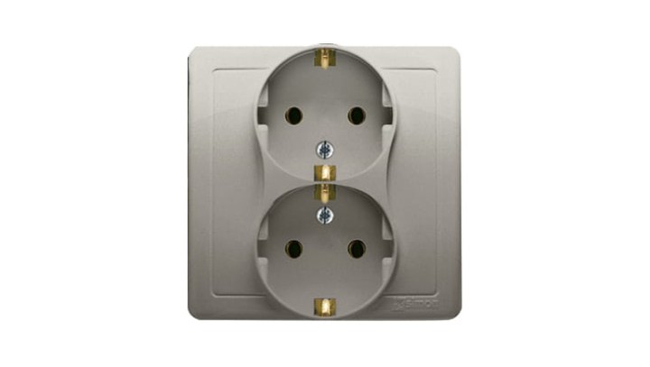 BASIC MODUŁ SATYNOWY GNIAZDO PODWÓJNE Z/ U SCHUKO