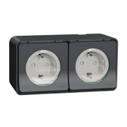Berker W.1 Gniazdo podwójne poziome z/u kompletne 2 wejścia IP55 szary 6768823525