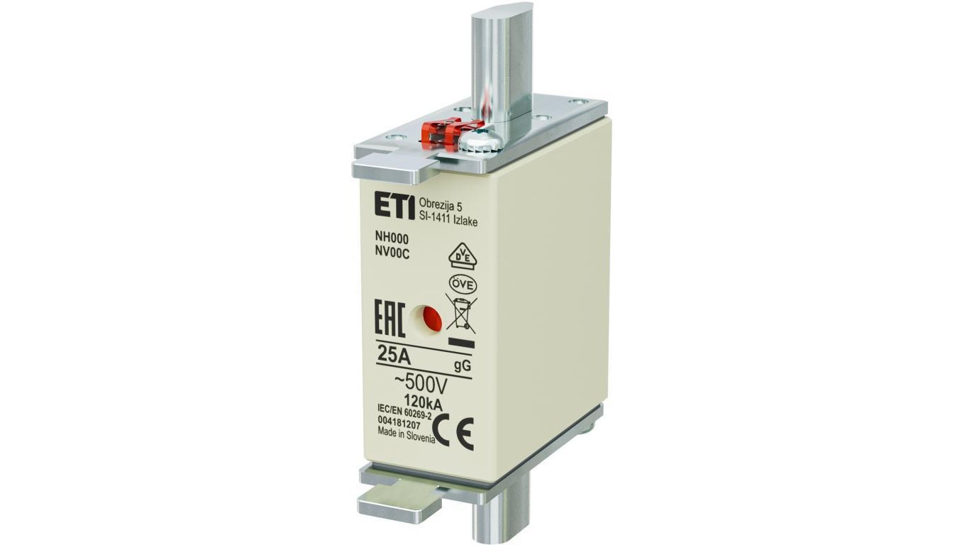 Bezpiecznik nożowy Wkładka topikowa, przemysłowa zwłoczna KOMBI NH000, NH00C gG/gL 25A 500V ETI POLAM