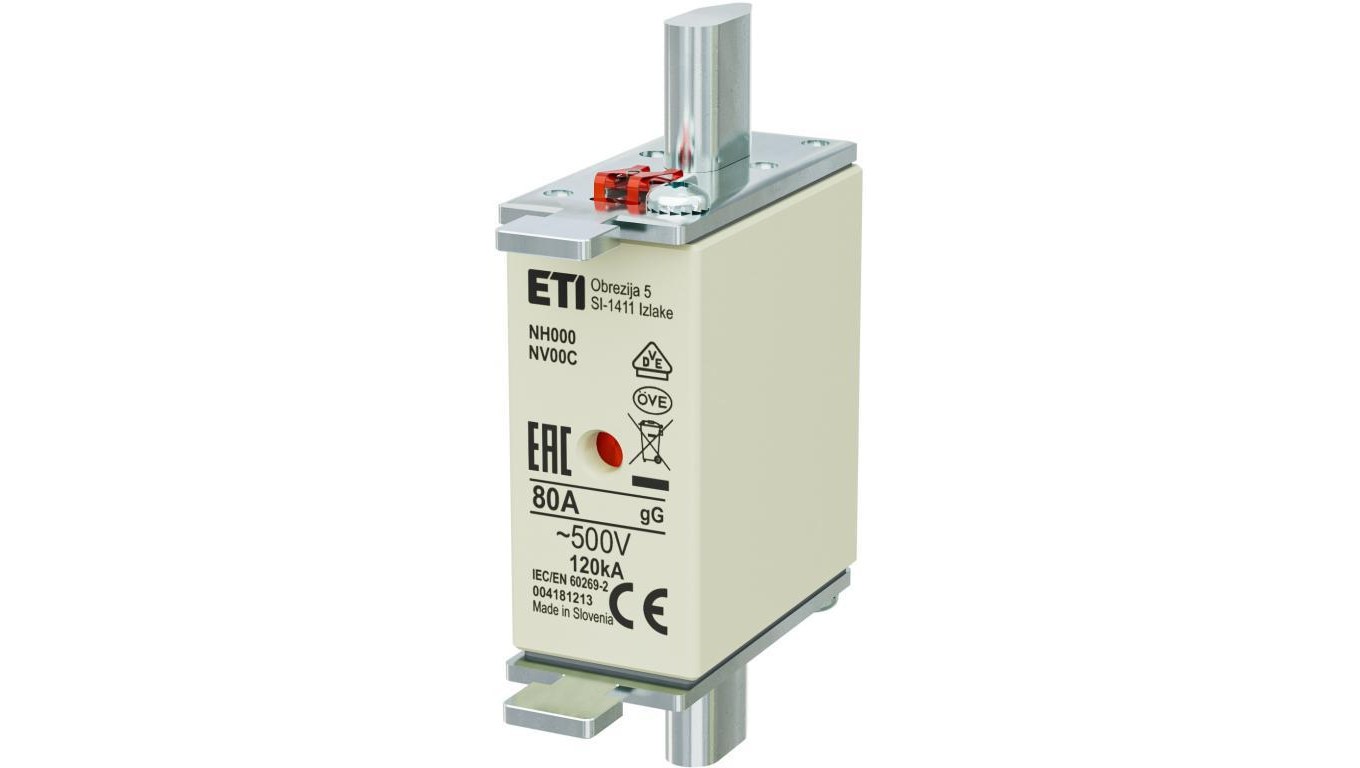 Bezpiecznik nożowy Wkładka topikowa, przemysłowa zwłoczna KOMBI NH000, NH00C gG/gL 80A 500V ETI POLAM