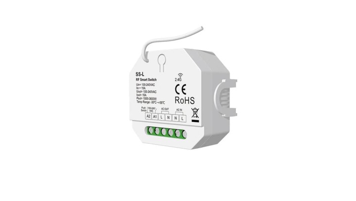 Bezprzewodowy włącznik oświetlenia Skydance - 230VAC/15A - sterowanie radiowe 2,4GHz - na szynę DIN - SS-L