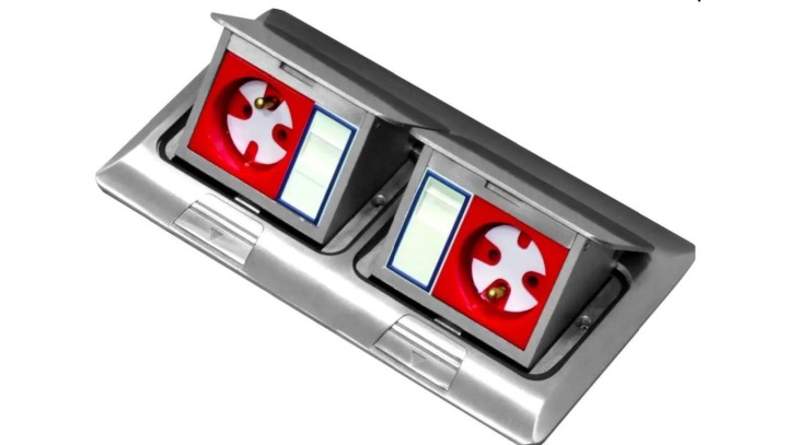Box podłogowy mini 2x3M - puszka blatowo-podłogowa podwójna do montażu gniazd standardu 22,5x45 mm (45x45 mm) uchylna