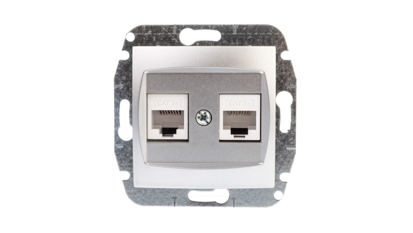 CARLA Gniazdo komputerowe podwójne 2xRJ45 cat 5e srebrne 1749-16