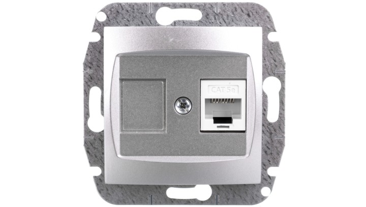 CARLA Gniazdo komputerowe pojedyncze RJ45 cat 5e srebrne 1748-16