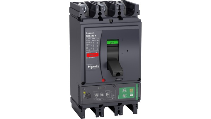 Circuit breaker Compact NSX400F, 36kA at 415 VAC, Micrologic 4.3 Vigi trip unit 400 A, 3 poles 3d LV433934