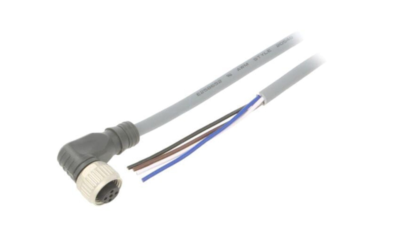 CONE14NF-A5P Przewód przyłączeniowy, PIN: 4, kątowe, 5m, M12, 250VAC, 4A, Żyły: 4