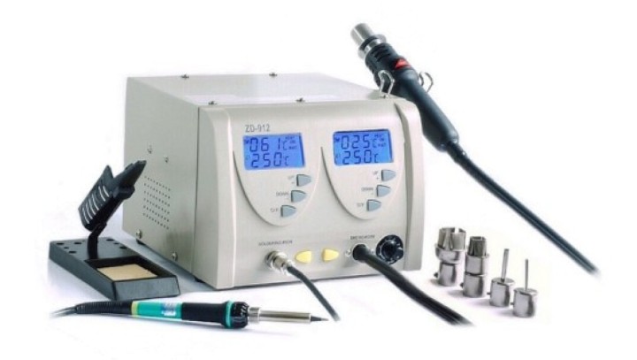 Cyfrowa stacja lutownicza z kolbą na gorące powietrze HOT-AIR 2w1 + podstawka + komplet 4 dysz MP-ZD-912 22315