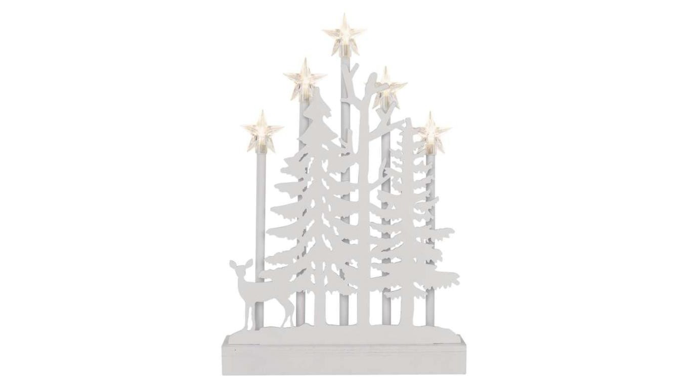 Dekoracje - świecznik biały 5 LED 35,5 cm, 2x AA ciepła biel, IP20, timer DCAW13