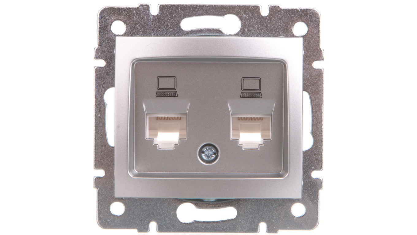 DOMO Gniazdo komputerowe podwójne niezależne 2x RJ45Cat 5e Jack srebrne 011410043 24873