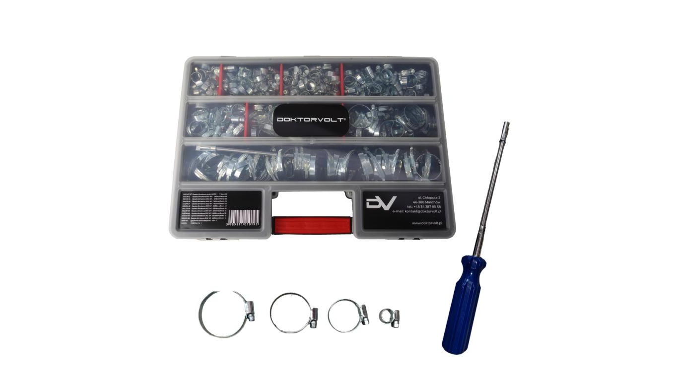 Duży zestaw obejm opasek ślimakowych z elastycznym kluczem GDC/S/W1 417 elem. 0195