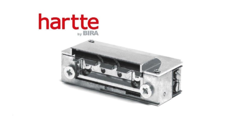 Elektrozaczep Hartte XS00U-BC niskoprądowy wąski ze wzmocnioną sprężyną i wyślizgiem oraz uniwersalnym zasilaniem 12-24V AC/DC