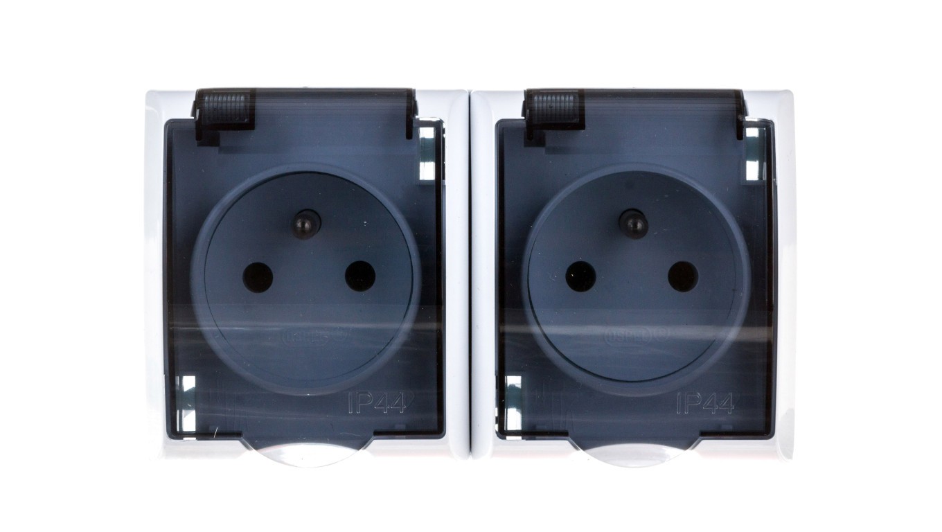FALA Gniazdo hermetyczne podwójne z/u IP44 klapka przezroczysta białe GNH-2HZ/00/d