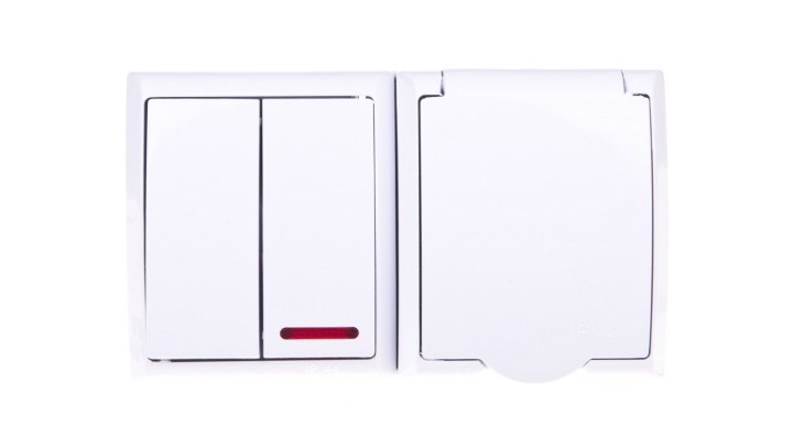 FALA Łącznik hermetyczny świecznikowy z podświetleniem + gniazdo z/u z klapką biały ZH-Ł2SG/00/w