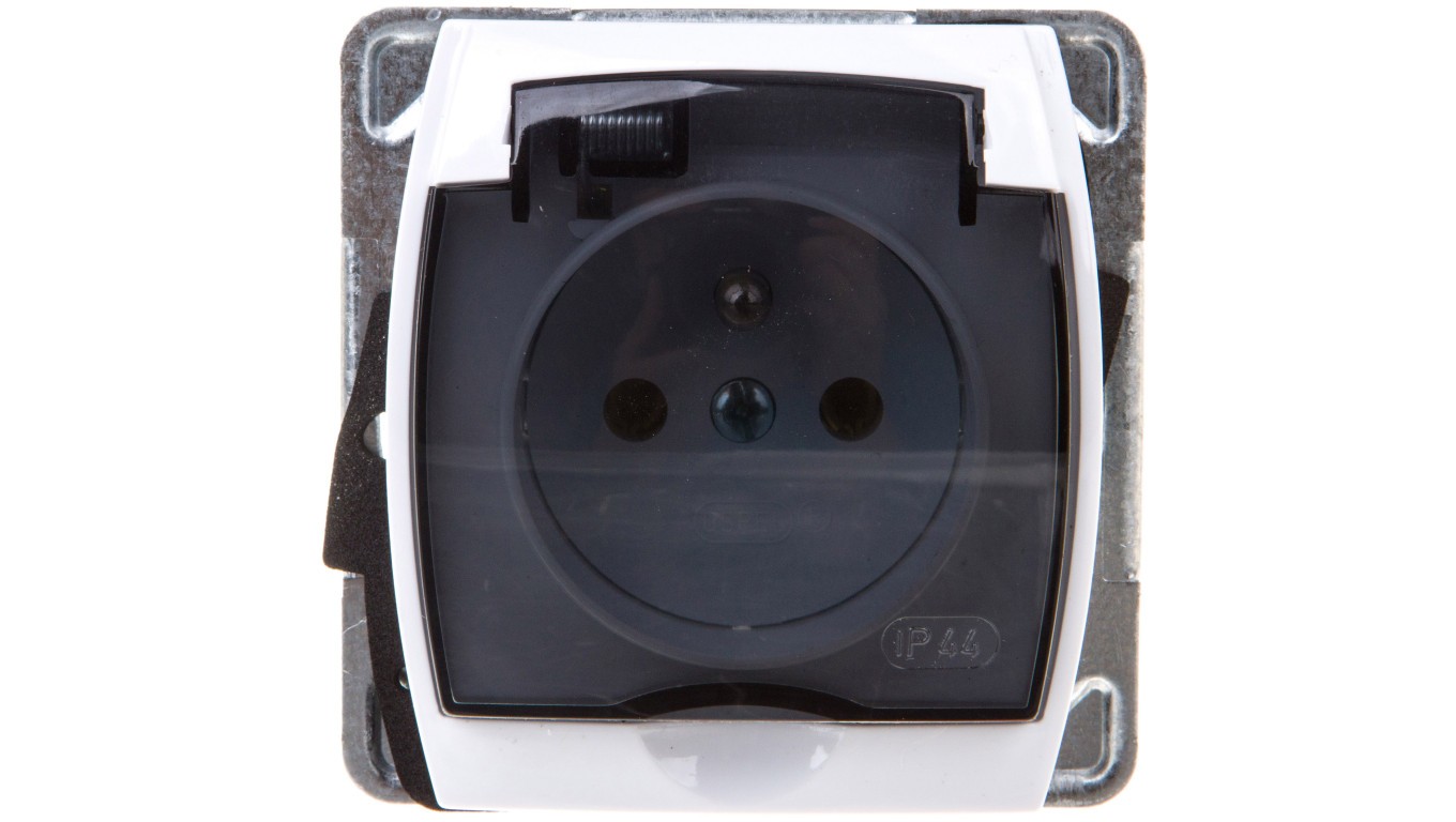 GAZELA Gniazdo bryzgoszczelne z/u IP44 klapka przezroczysta białe GPH-1JZ/m/00/d