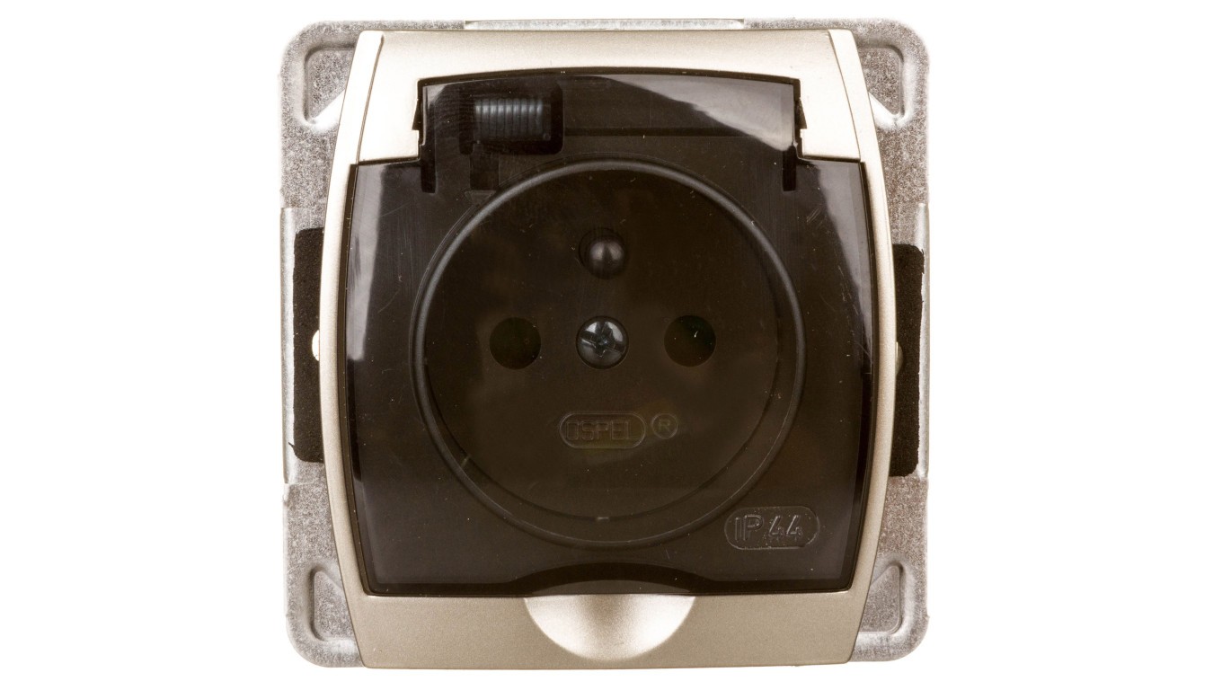 GAZELA Gniazdo bryzgoszczelne z/u IP44 z przesłonami klapka przezroczysta srebro/ tytan GPH-1JZP/m/18/23/d