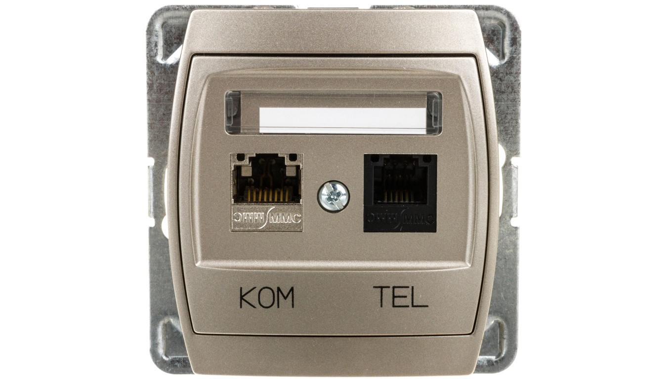GAZELA Gniazdo teleinformatyczne RJ45 kat.6 + RJ11 MMC satynowe GPKT-J/K6E/m/16/16