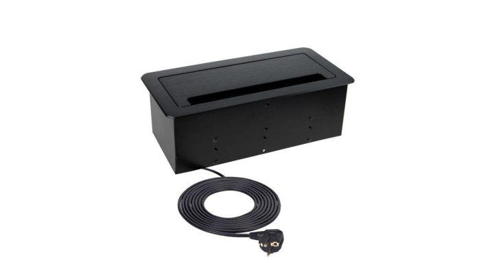 Gniazdo meblowe, blatowe 2x2P+Z 16A 230V + 1xUSB A + 1xUSB C 2,1A 5V + RJ45 + HDMI 2.0 1,5m czarny KOMBI BOX