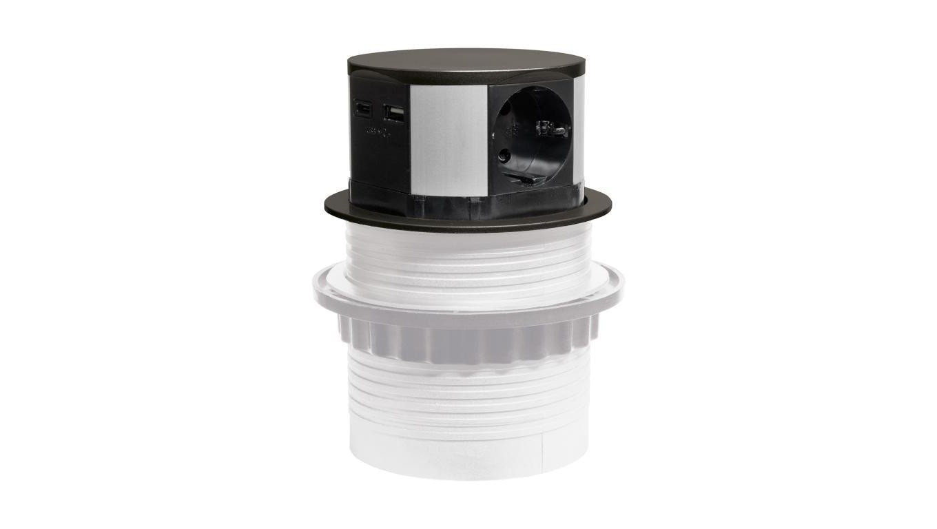 Gniazdo meblowe do zabudowy 3 złącza wtyczkowe schuko 1xUSB A 1xUSB C GMZ-5AO W-72014