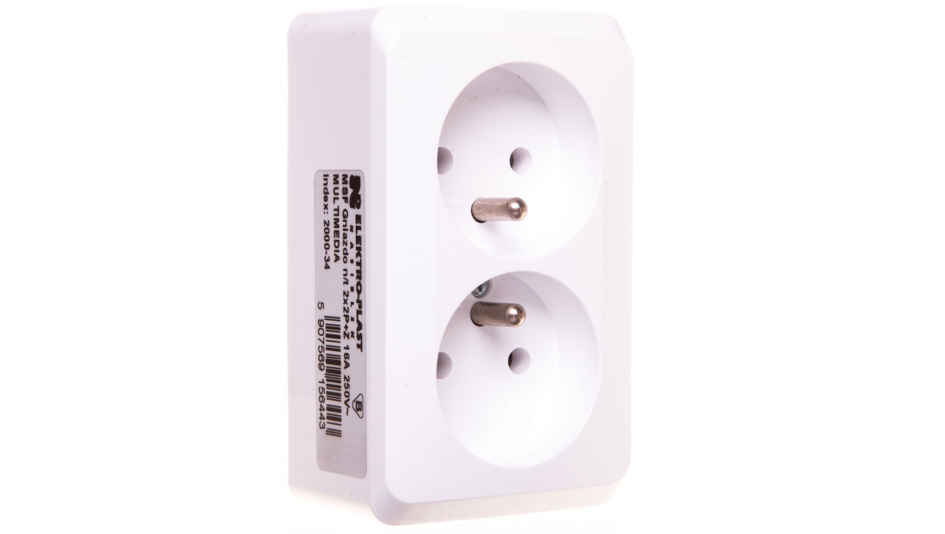 Gniazdo n/t 2x2P+Z 16A MULTIMEDIA MSF 2000-34