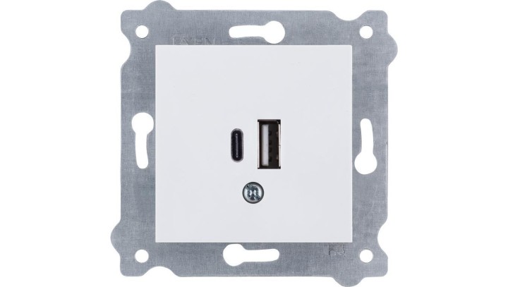 Gniazdo podwójne ładowania USB Typ C + Typ A Biały 277/01 EXEN