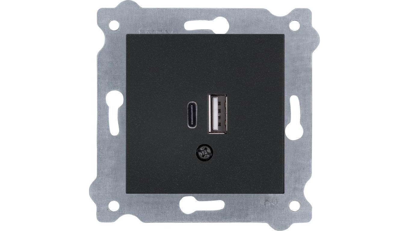 Gniazdo podwójne ładowania USB Typ C + Typ A Czarny Metalik 277/14E